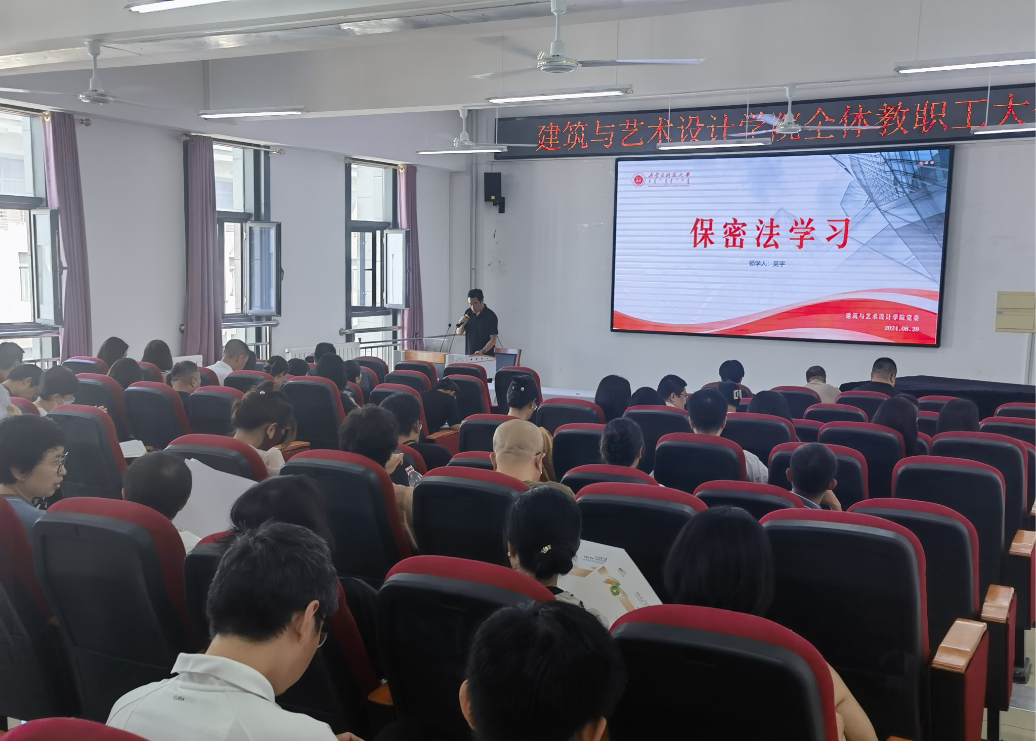 为进一步增强全体教职工的保密意识,确保学院各项工作的稳步推进,2024年8月29日下午14:30,我院在明德楼B401召开全院教职工大会,进行关于保密法的学习,会议由学院党委副书记副院长吴宇同志主持,全体教职工参加学习。