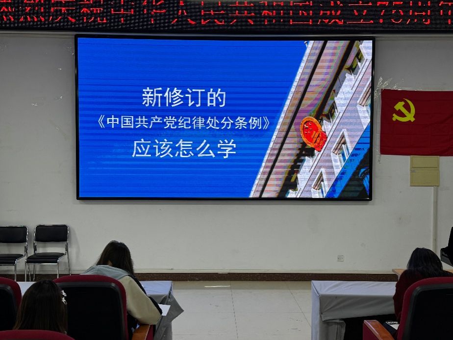 为加强学员们对新修订的党纪认识,2024年10月16日中午12:30,我院在明德楼b401进行了“新修订的《中国共产党纪律处分条例》应该怎么学”主题党课培训,本次培训的主讲人是张轩老师。