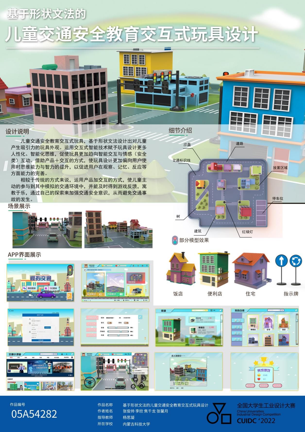 [20]《基于形状文法的儿童交通安全教育交互式玩具设计》获2022年全国大学生工业设计大赛内蒙古赛区暨内蒙古自治区第四届大学生工业设计大赛三等奖(杨思凝)