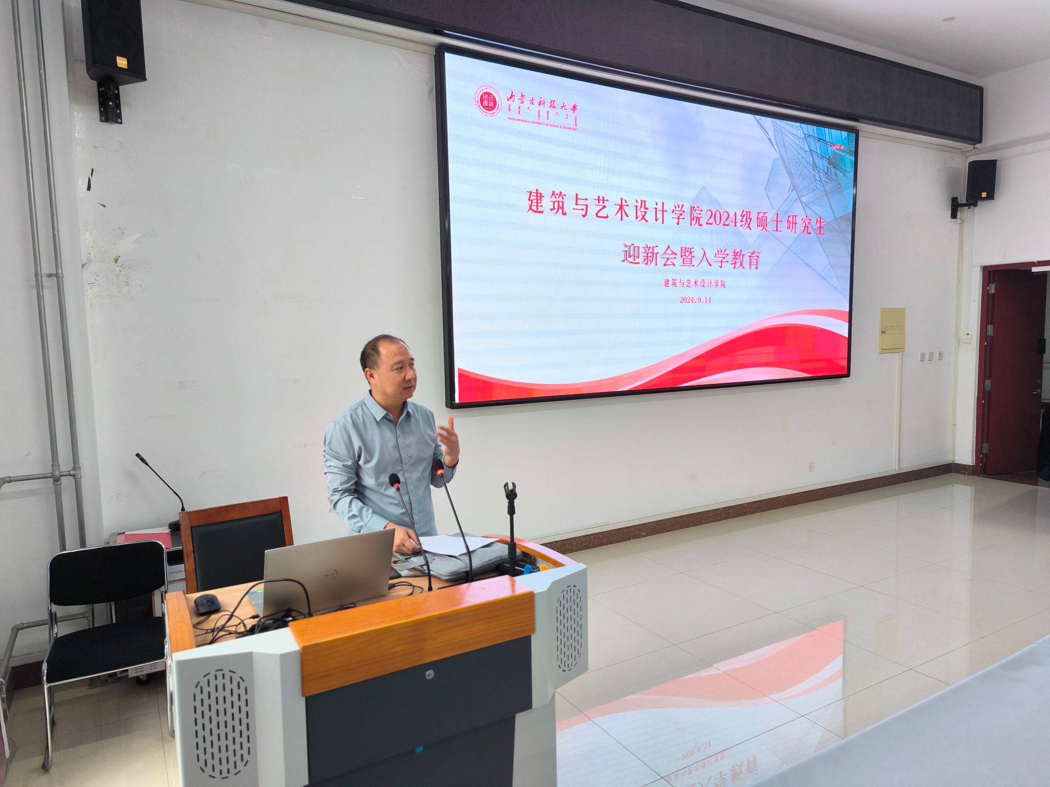 77779193永利官网2024级硕士研究生迎新会于2024年9月14日在明德楼B401顺利举行,针对我院建筑学一级学科硕士点、设计学一级学科硕士点和设计专业硕士学位点,院长韩冬楠、副院长李志春分别介绍了相关研究生教育基本规章制度、研究生科研方向选择、研究生未来职业规划、导师选择等情况。建筑学学科王伟栋教授、设计学/设计学科边坤教授分别对2024级硕士研究生介绍了建筑学、设计学/设计学科方向及导师基本情况。