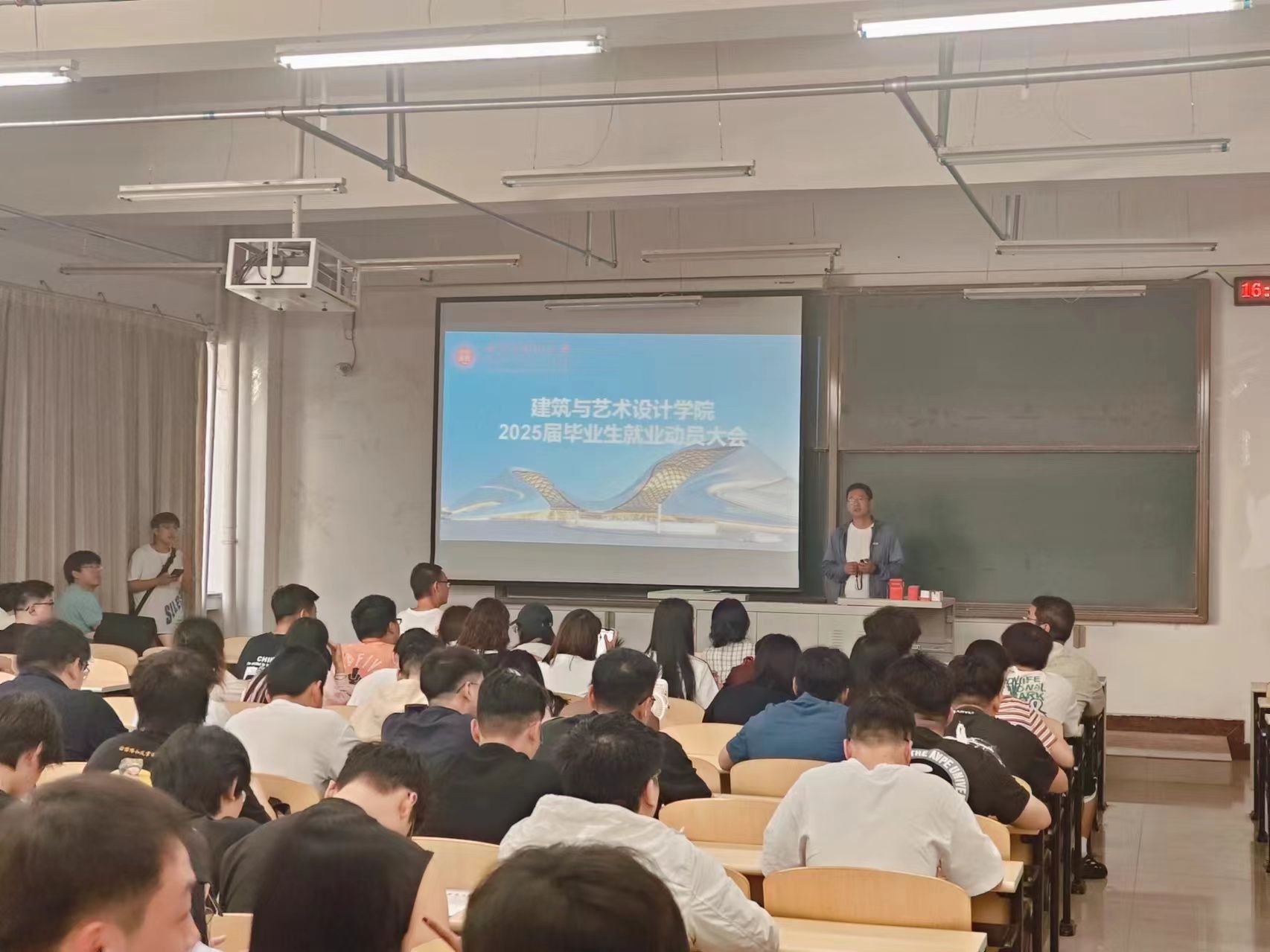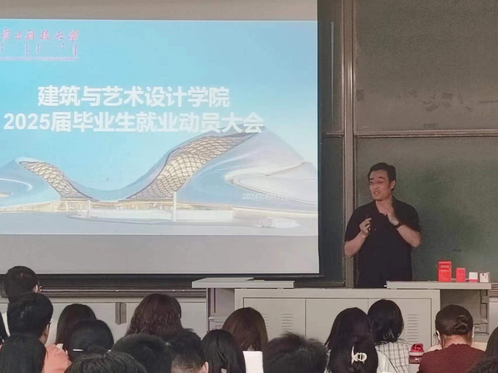为统筹推进2025届毕业生就业工作,引导2025届毕业生准确把握就业形势,明确就业发展方向,我院于2024年6月7日在逸夫楼召开2025届毕业生就业动员大会,学院党委副书记、副院长吴宇,辅导员朱国富,2025届毕业班班主任老师,2025届全体毕业生参会。