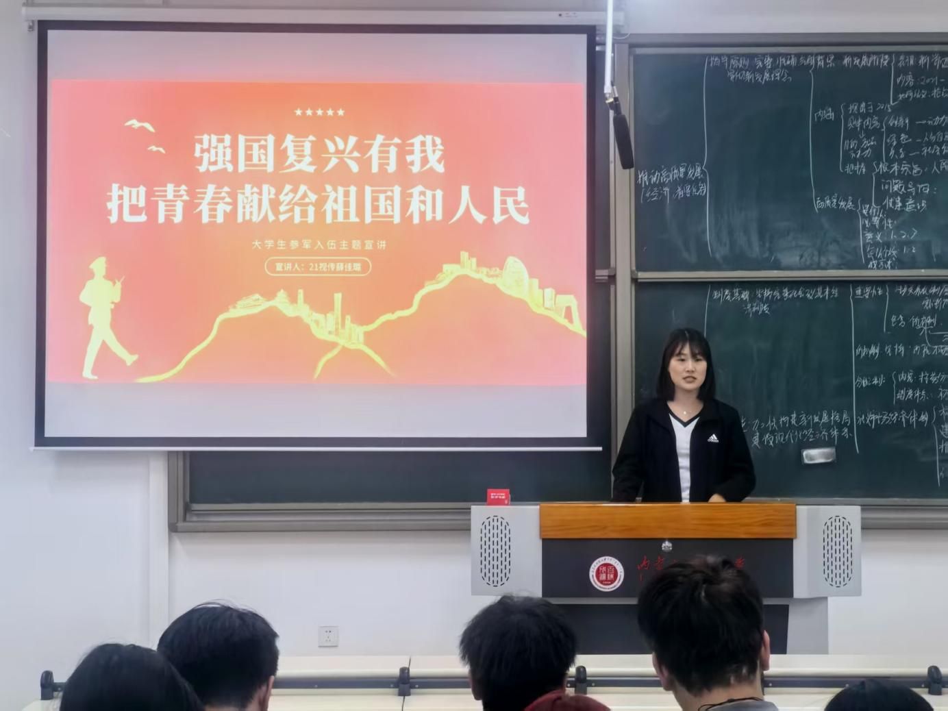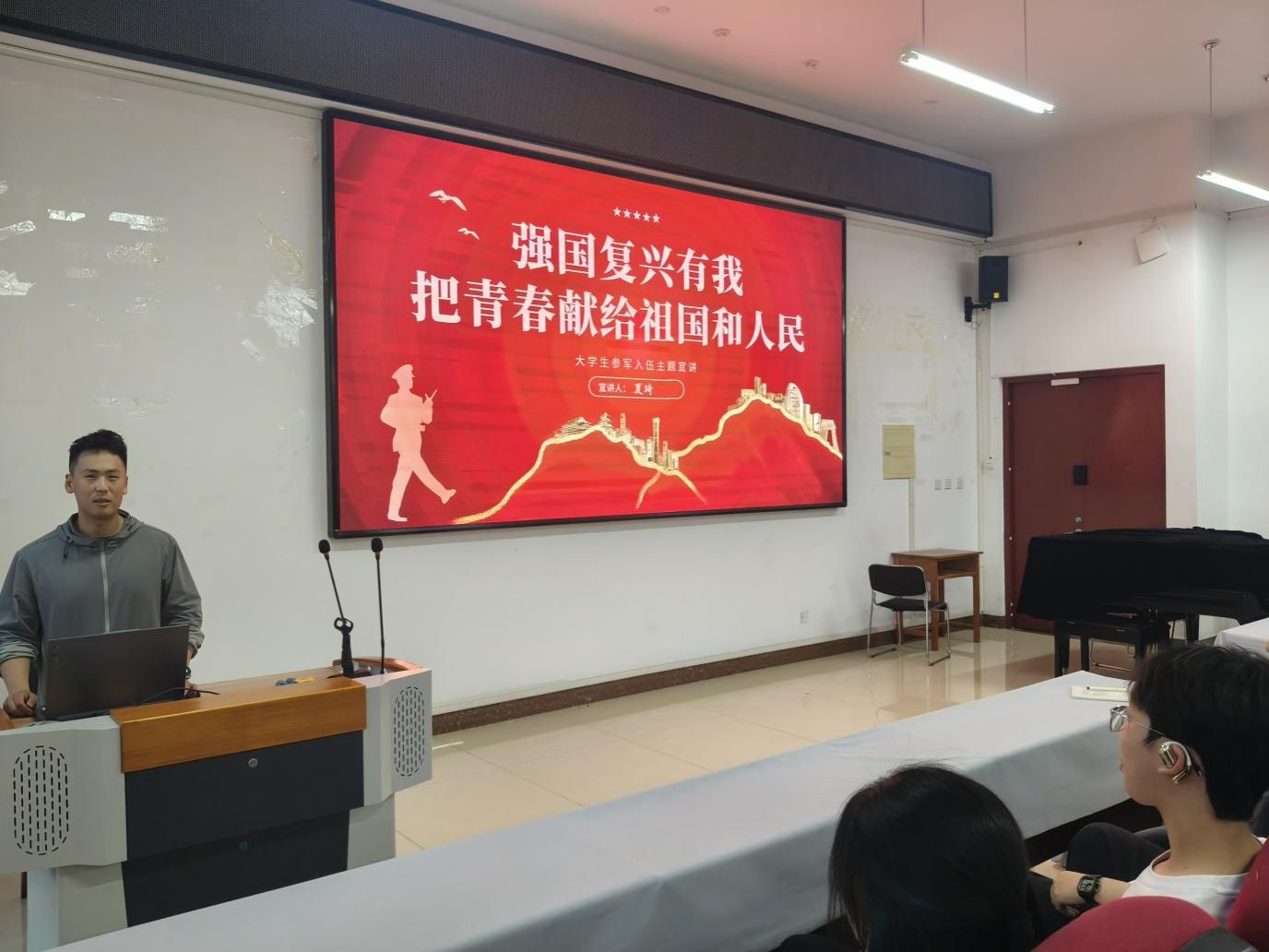 这次活动分别薛佳璐、陈徐、冀鹏辉、夏琦4位同学进行分享,内容涵盖入伍政策、军旅生活、信念培养等几个方面。