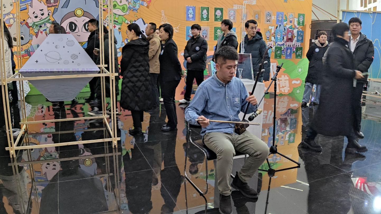 开幕仪式上,2023年10月开展的“世界稀土之乡文旅专列设计创新工作坊”活动中诞生的文艺作品,由中国音乐家协会会员、包头市音乐家协会副主席贺翔老师作曲,中国音乐家协会会员,包头市音乐家协会名誉副主席葛·娜仁托雅作词,为白云鄂博创作的歌曲《稀土故乡》《云端之上》首次亮相。开幕仪式后,领导及来宾参观展区并聆听了参展作品的指导教师及学生的讲解。