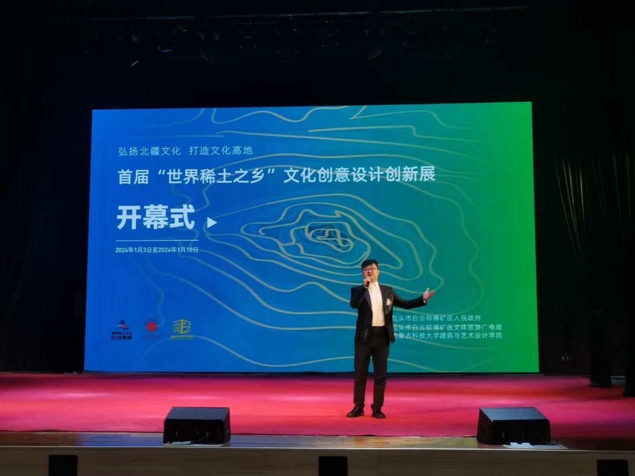 1月3日上午,由白云鄂博矿区人民政府和我院联合主办,白云鄂博矿区文体旅游广电局协办的首届“世界稀土之乡”文化创意设计创新展在包头市白云鄂博矿区草原英雄小姐妹展览馆盛大开幕。
