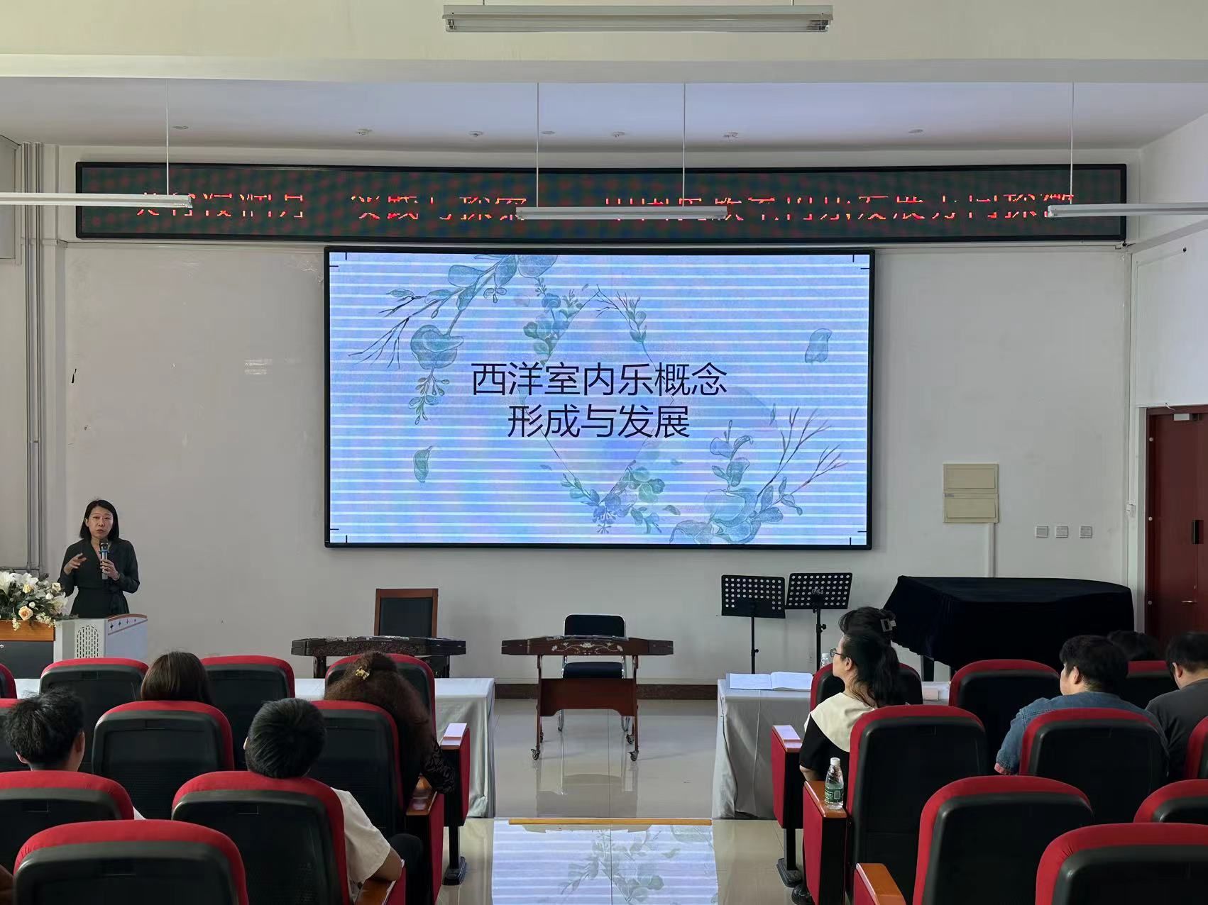 丁林虹老师为我校师生举办了一场题为“中国民族室内乐发展方向探微”的讲座。讲座中,丁老师系统梳理了中国民族室内乐的历史发展渊源,详细介绍了其目前的发展情况及未来的发展方向。她通过丰富的理论知识和生动的案例,向在场师生展示了中国民族室内乐的独特魅力。现场还欣赏了许多当代优秀民族乐器演奏家的室内乐作品,让大家在理论与实践的结合中更深入地理解民族室内乐的精髓。此外,丁老师还在现场进行了一场室内乐排练的指导,手把手教授学生们如何更好地演奏和理解民族室内乐作品。