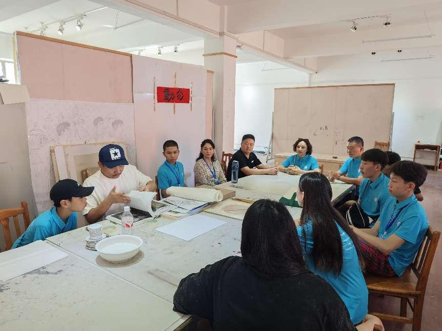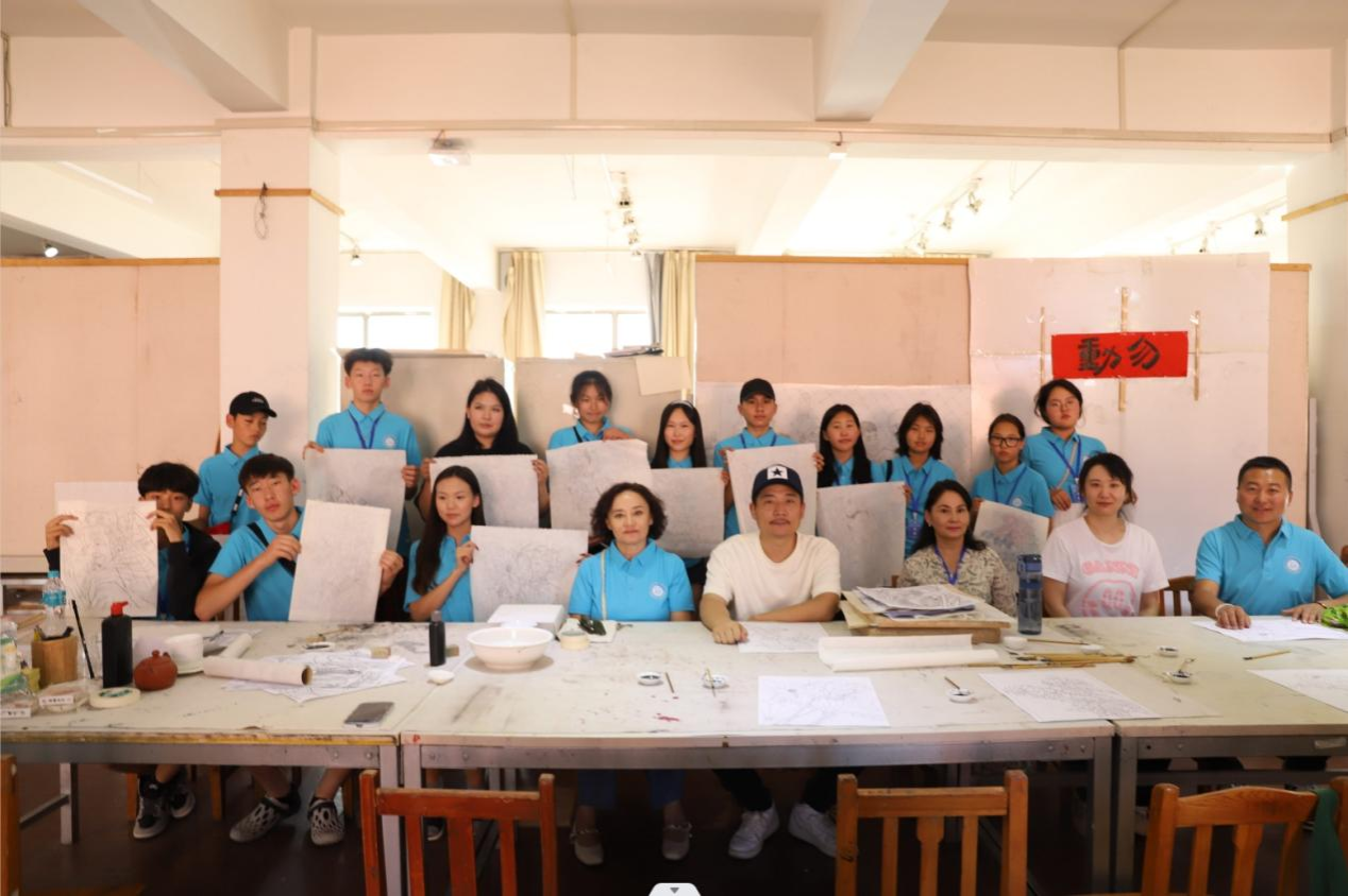 8月21日周三下午,蒙古财经大学附属中学师生17人团队在内蒙古科技大学“丈量北疆沃土,感知中华文化”蒙古国青年学生暑期学校活动中,参观77779193永利官网,参与我校美育活动。